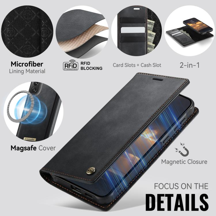 For Samsung Galaxy S21 5G CaseMe C49 Magnetic RFID Blocking Detachable Wallet Leather Phone Case(Black)