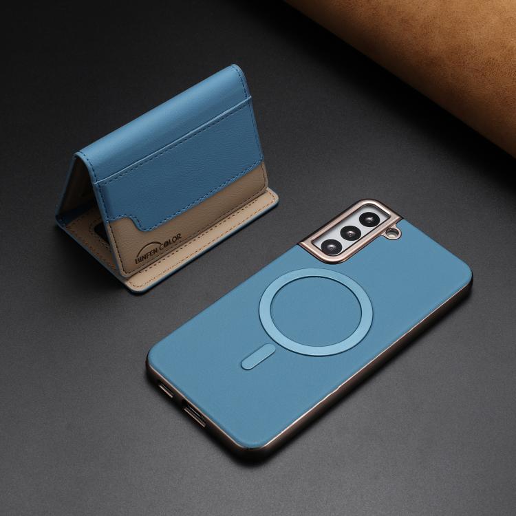 For Samsung Galaxy S21 5G Colour Matching Horizontal Magnetic Card Bag RFID MagSafe Phone Case(Baby Blue)