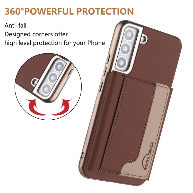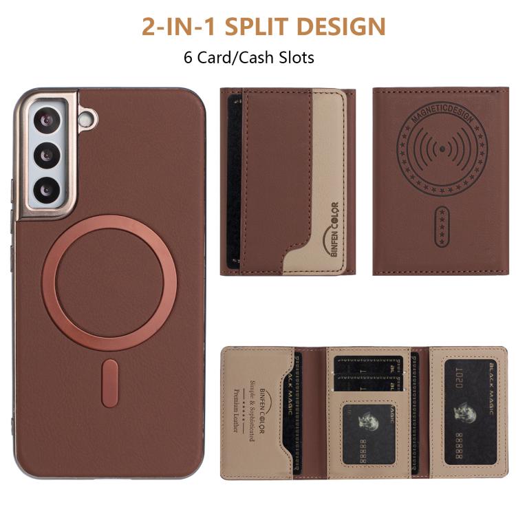For Samsung Galaxy S21 5G Colour Matching Horizontal Magnetic Card Bag RFID MagSafe Phone Case(Brown)