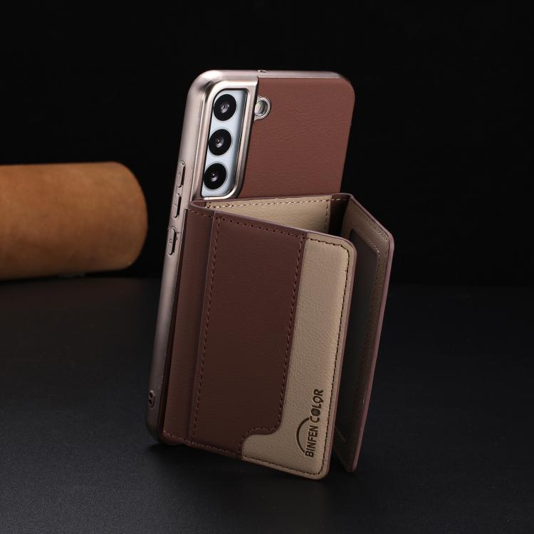 For Samsung Galaxy S21+ 5G Colour Matching Horizontal Magnetic Card Bag RFID MagSafe Phone Case(Brown)