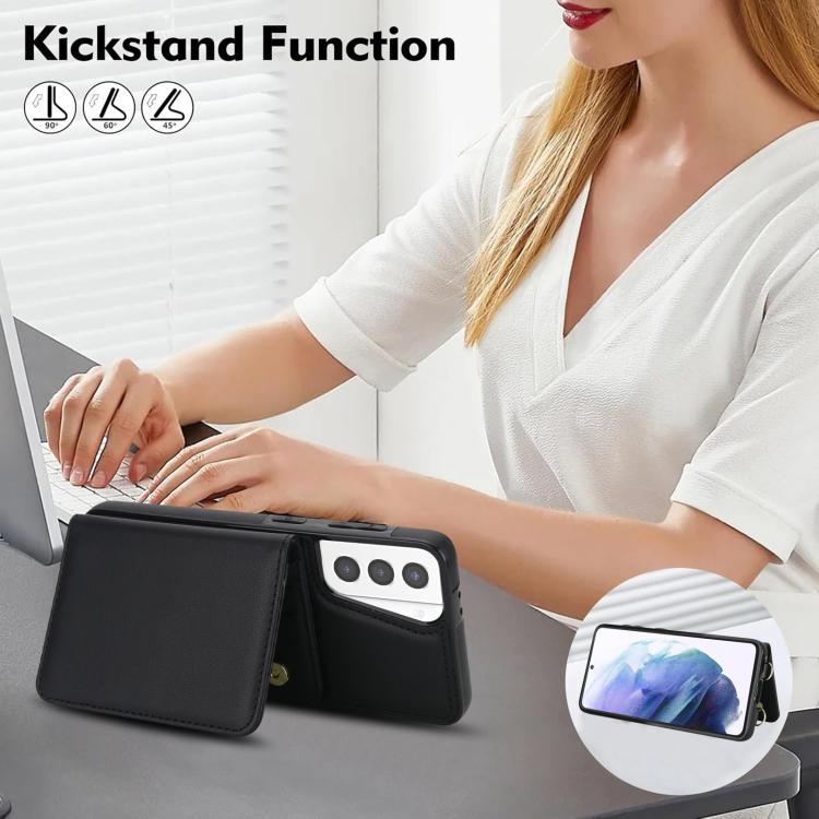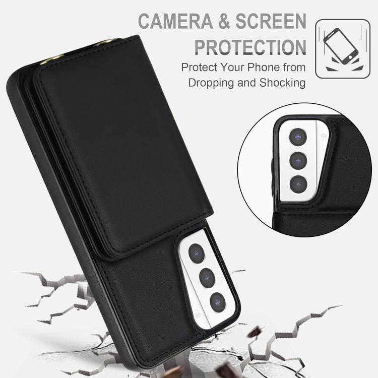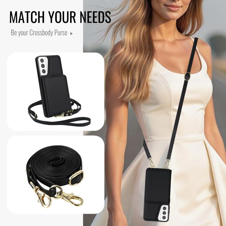 For Samsung Galaxy S21+ 5G Crossbody Dual-buckle Wallet RFID Back Leather Phone Case(Black)