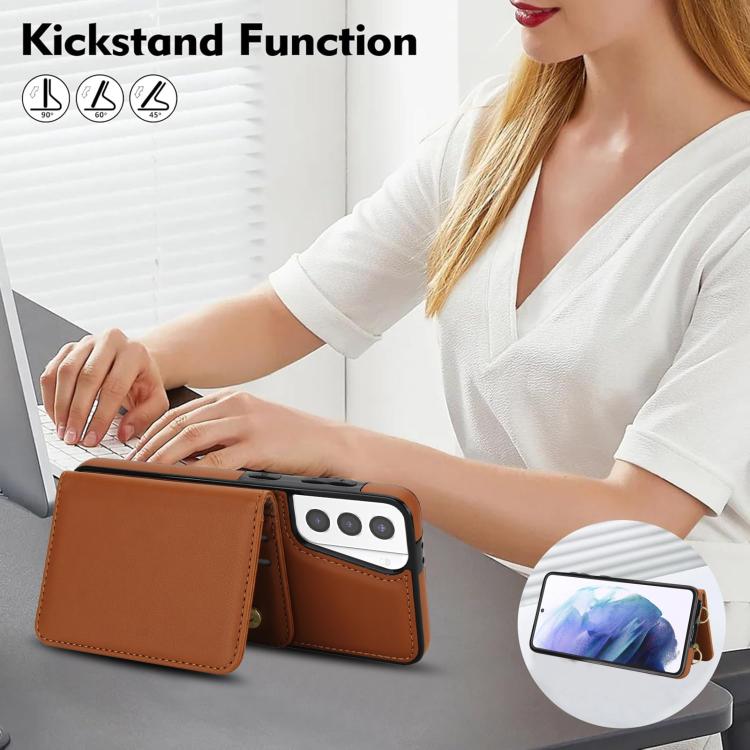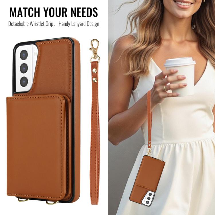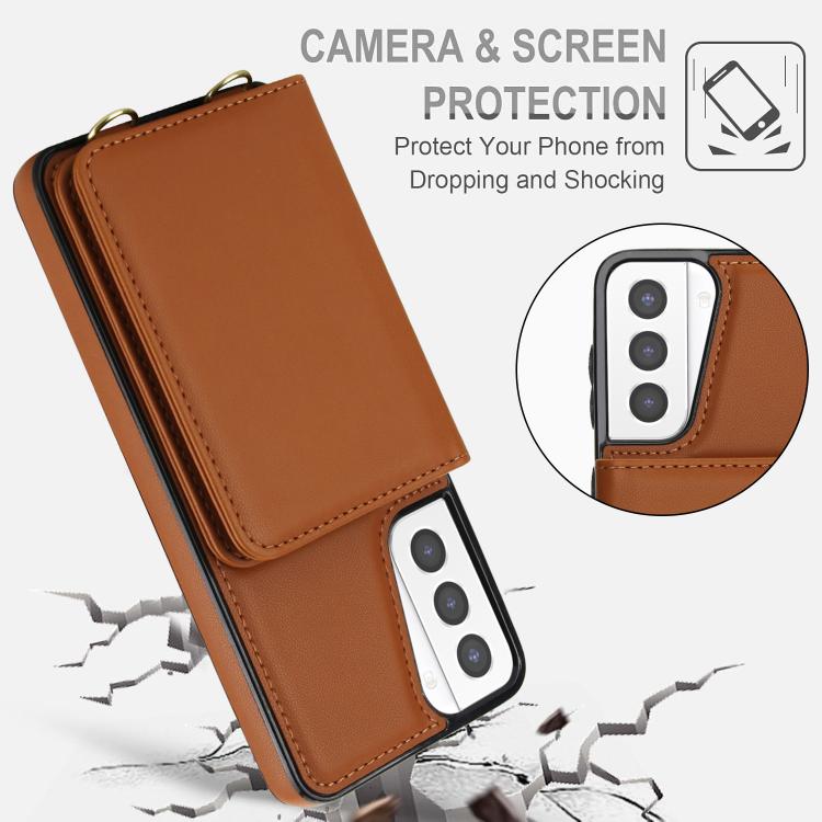 For Samsung Galaxy S21+ 5G Crossbody Dual-buckle Wallet RFID Back Leather Phone Case(Brown)