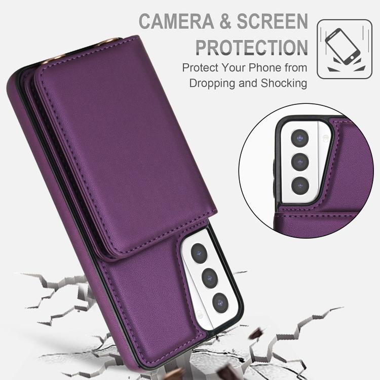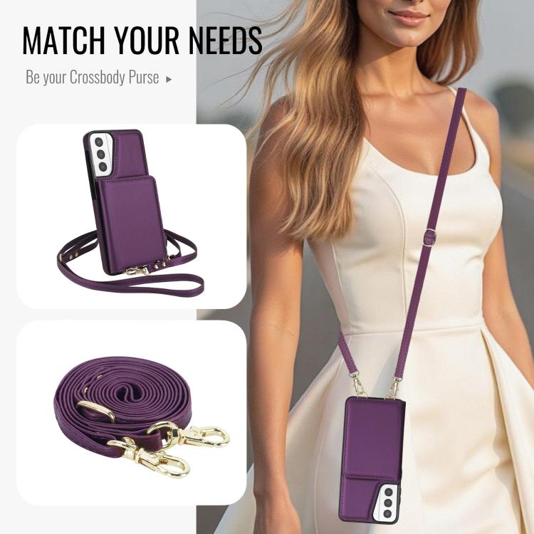 For Samsung Galaxy S21+ 5G Crossbody Dual-buckle Wallet RFID Back Leather Phone Case(Dark Purple)