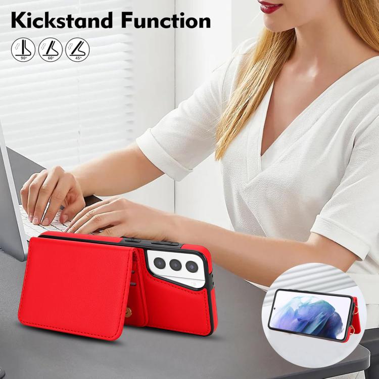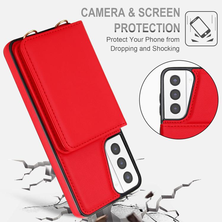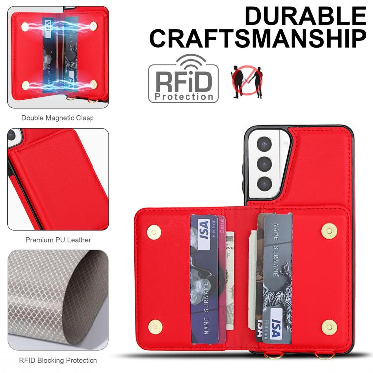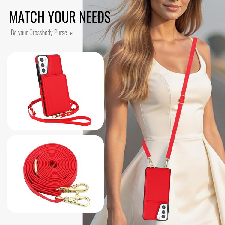 For Samsung Galaxy S21+ 5G Crossbody Dual-buckle Wallet RFID Back Leather Phone Case(Red)