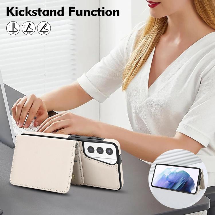 For Samsung Galaxy S21+ 5G Crossbody Dual-buckle Wallet RFID Back Leather Phone Case(White)