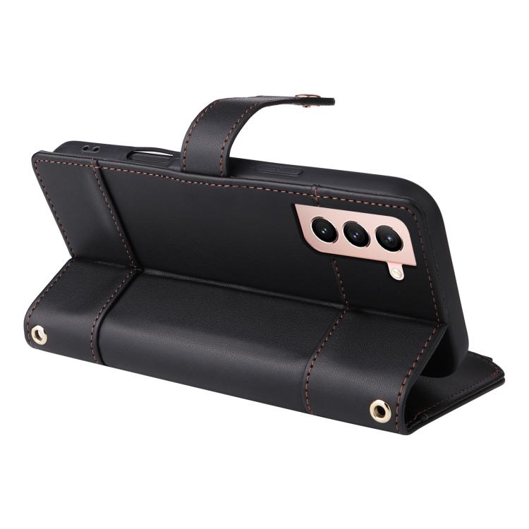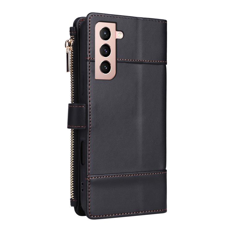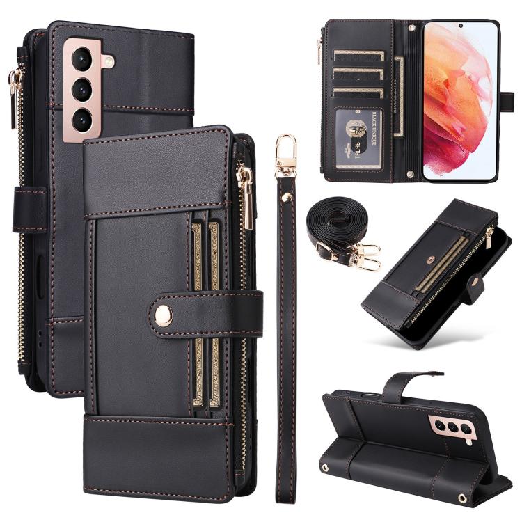 For Samsung Galaxy S21 5G Crossbody Strap RFID Blocking Zipper Wallet Leather Phone Case(Black)