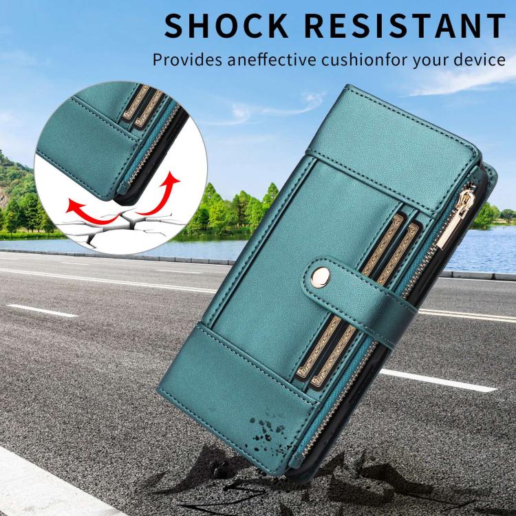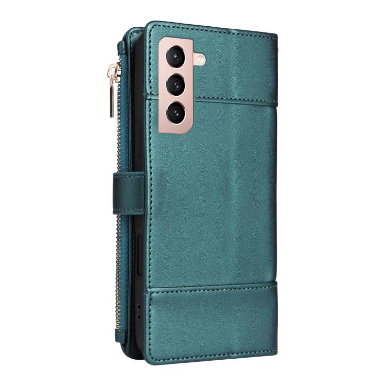 For Samsung Galaxy S21 5G Crossbody Strap RFID Blocking Zipper Wallet Leather Phone Case(Green)