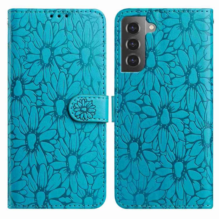 For Samsung Galaxy S21+ 5G Daisy Embossed Leather Phone Case(Blue)