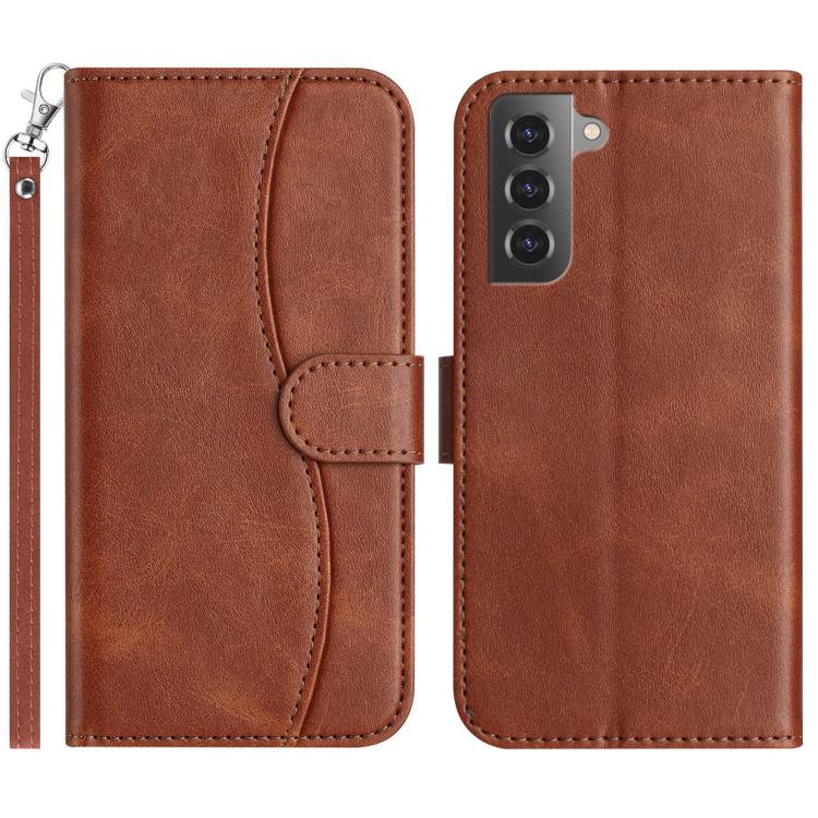 For Samsung Galaxy S21+ 5G Dual-Folded S-shape Leather Phone Case(Coffee)