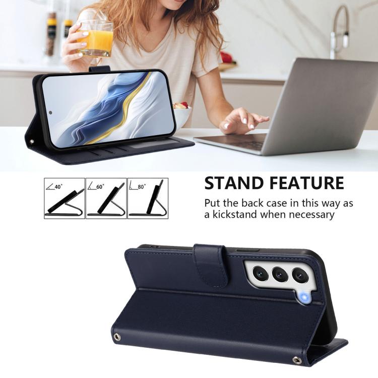 For Samsung Galaxy S21+ 5G Embossed Heart Cat Leather Phone Case with Hand Strap(Blue)