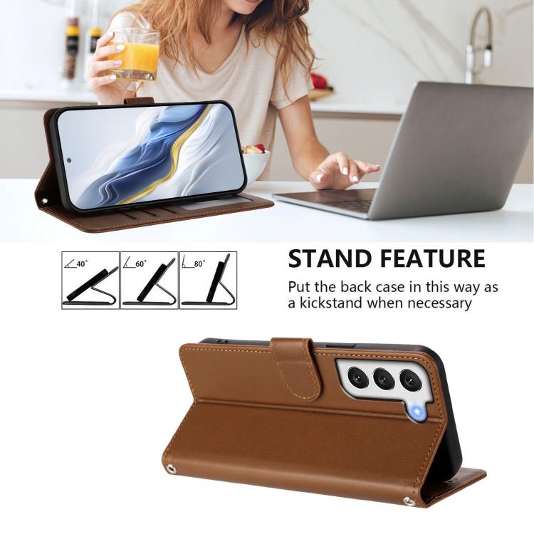For Samsung Galaxy S21 5G Embossed Heart Cat Leather Phone Case with Hand Strap(Brown)