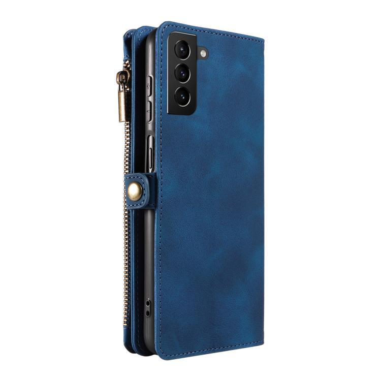 For Samsung Galaxy S21+ 5G Fantasy Multifunctional Zipper Wallet Leather Phone Case(Blue)