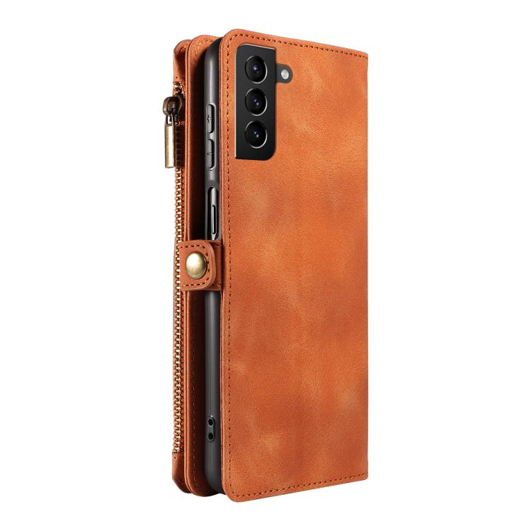 For Samsung Galaxy S21+ 5G Fantasy Multifunctional Zipper Wallet Leather Phone Case(Brown)