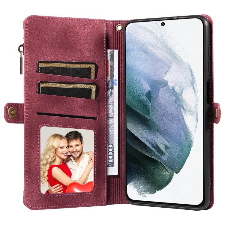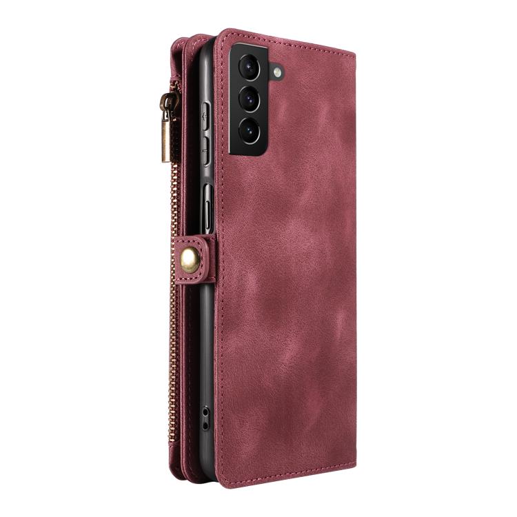 For Samsung Galaxy S21+ 5G Fantasy Multifunctional Zipper Wallet Leather Phone Case(Red)