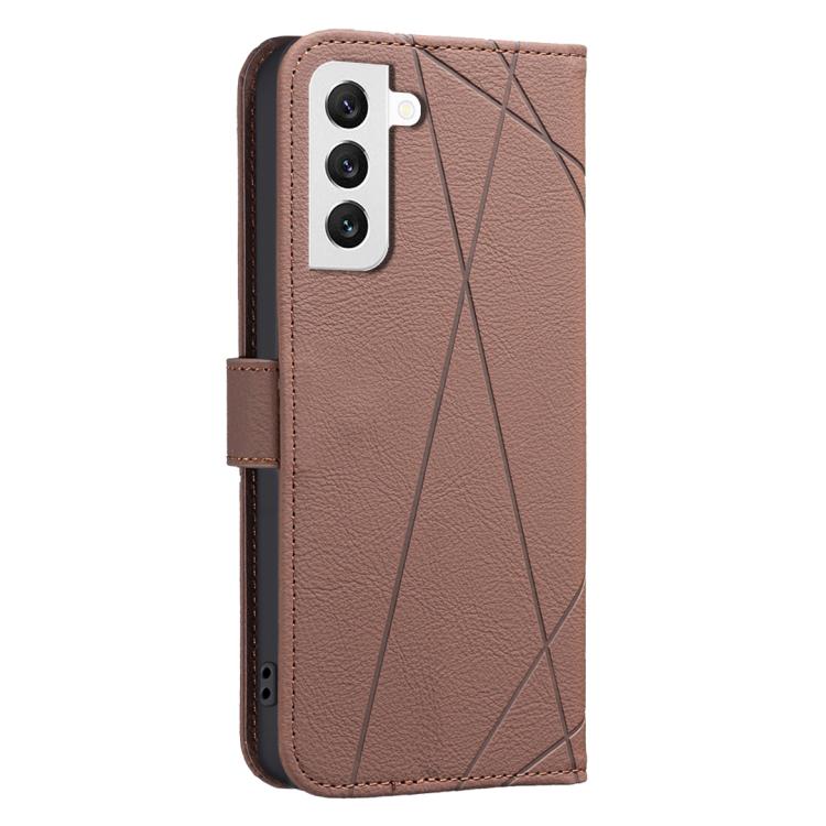 For Samsung Galaxy S21 5G Geometric Pattern RFID Leather Phone Case(Brown)