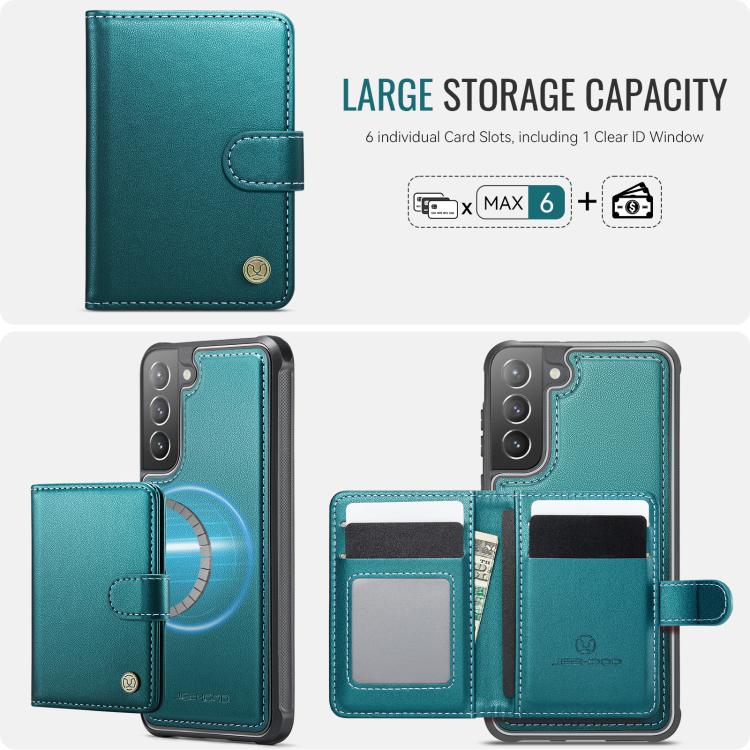 For Samsung Galaxy S21+ 5G JEEHOOD J09 Buckle Card Bag MagSafe Magnetic Style RFID Leather Phone Case(Green)
