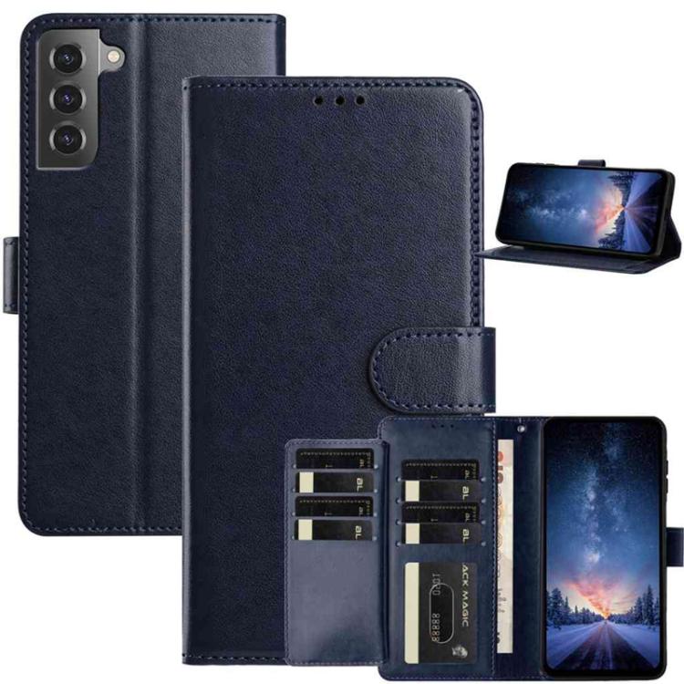 For Samsung Galaxy S21+ 5G Lambskin 8-card Slot Leather Phone Case(Dark Blue)