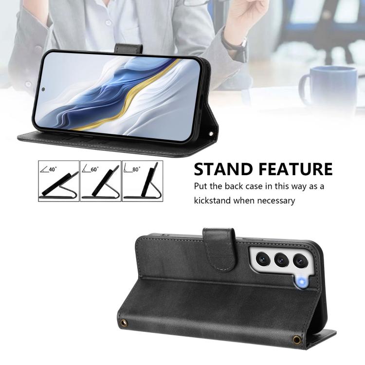 For Samsung Galaxy S21 5G Line Splicing Buckle Retro Leather Phone Case(Black)