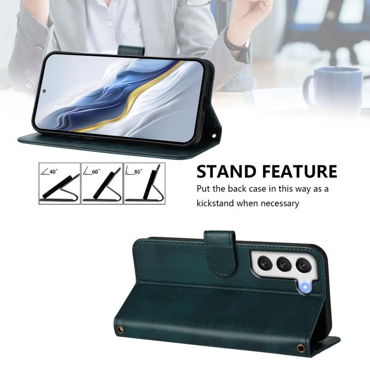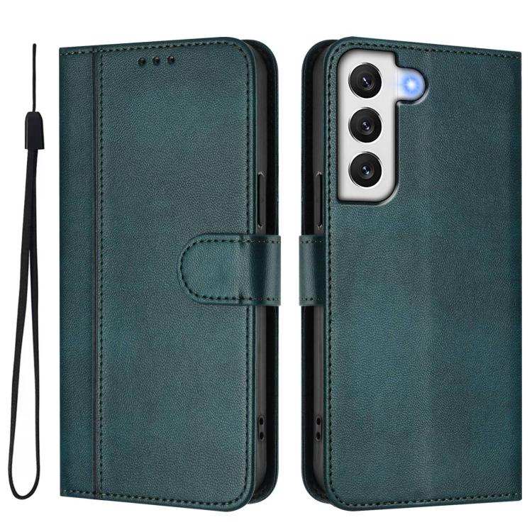 For Samsung Galaxy S21 5G Line Splicing Buckle Retro Leather Phone Case(Dark Green)