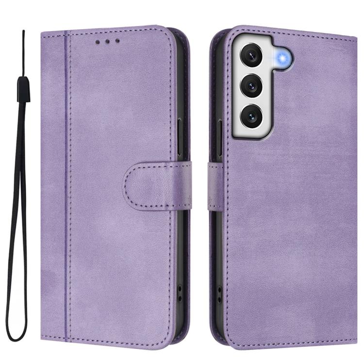 For Samsung Galaxy S21 5G Line Splicing Buckle Retro Leather Phone Case(Purple)