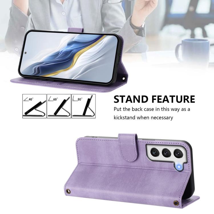 For Samsung Galaxy S21+ 5G Line Splicing Buckle Retro Leather Phone Case(Purple)