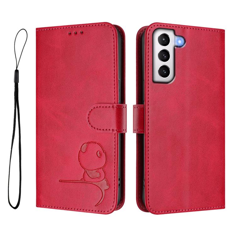 For Samsung Galaxy S21 5G Litter Panda Embossing RFID Leather Phone Case with Lanyard(Rose Red)