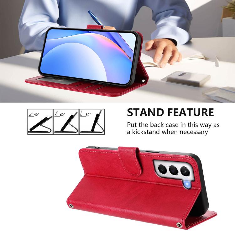 For Samsung Galaxy S21+ 5G Litter Panda Embossing RFID Leather Phone Case with Lanyard(Rose Red)