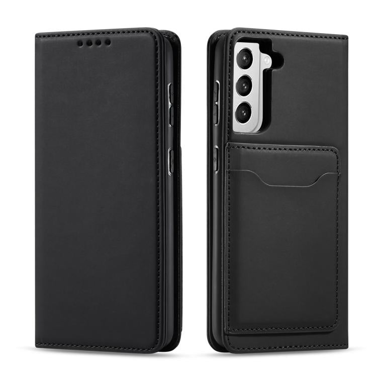 For Samsung Galaxy S21 5G Magnetism Skin Feel Card Holder Leather Phone Case(black)