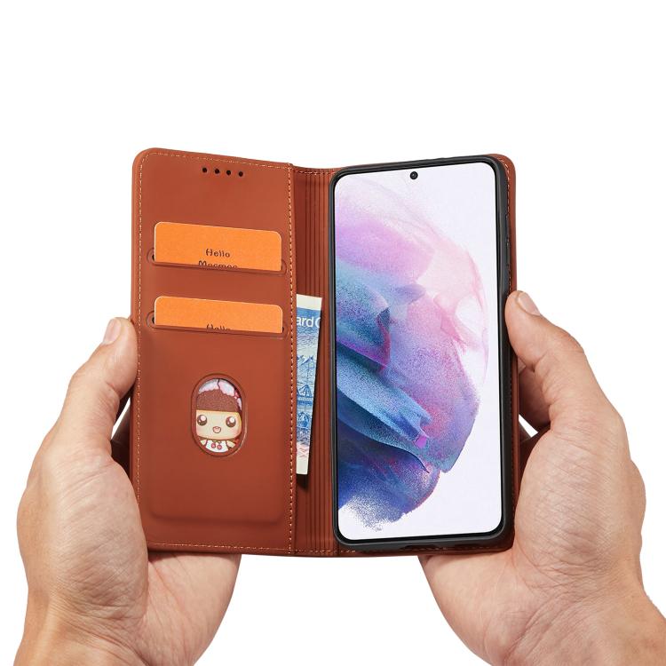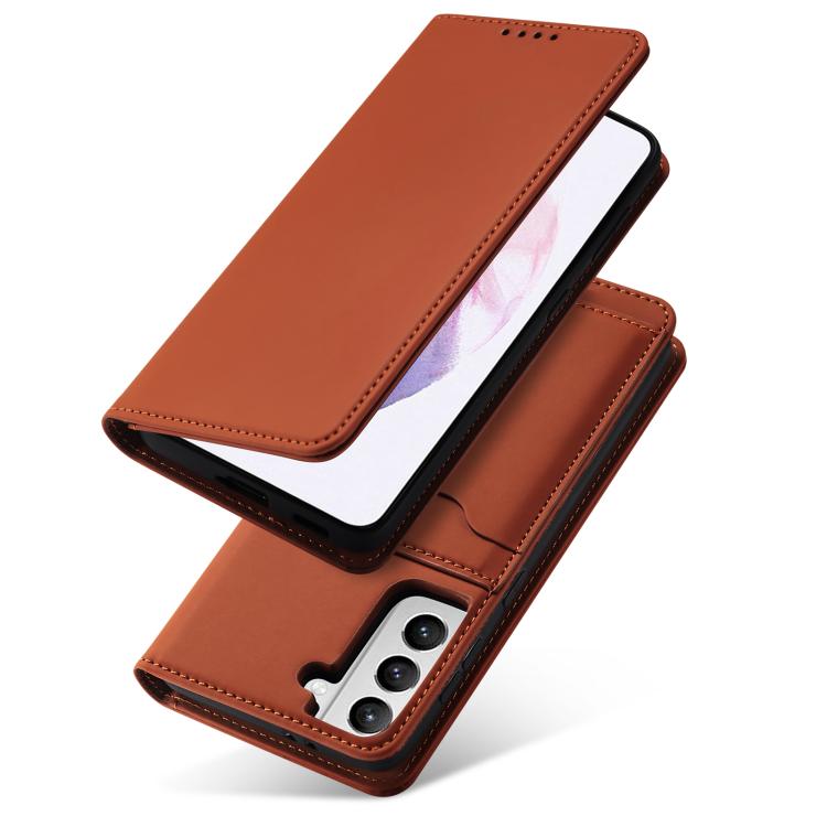 For Samsung Galaxy S21+ 5G Magnetism Skin Feel Card Holder Leather Phone Case(Brown)