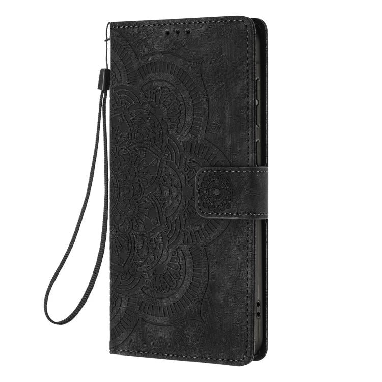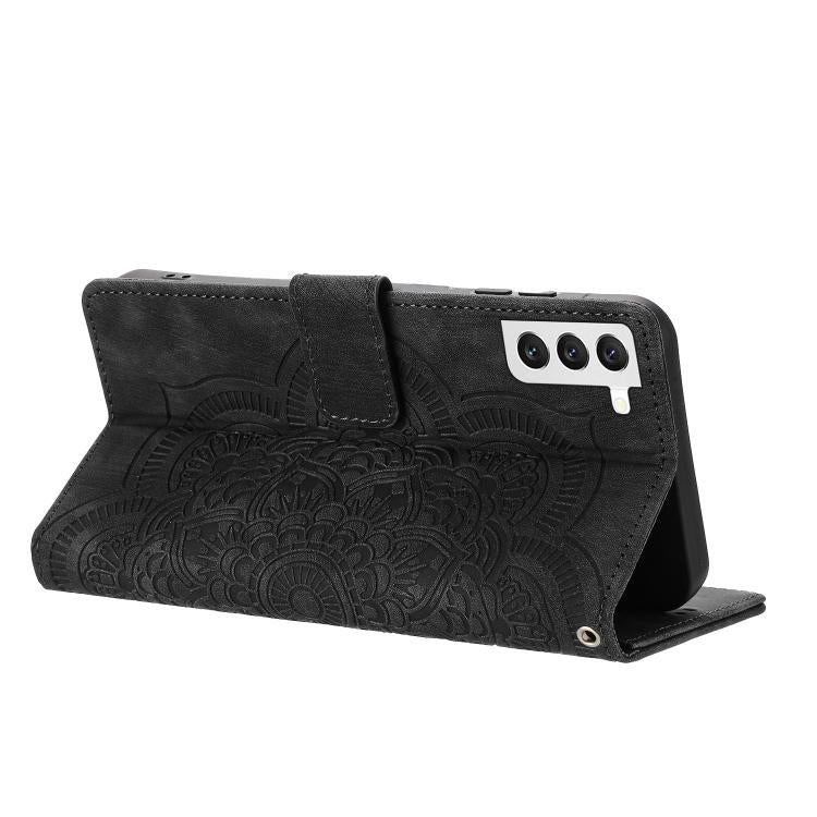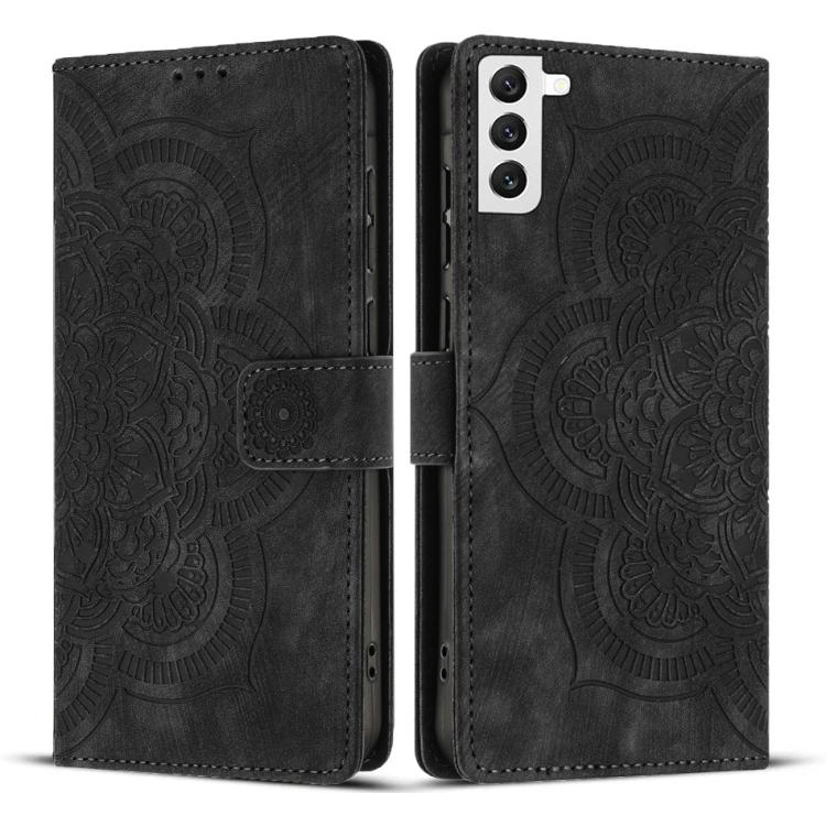 For Samsung Galaxy S21+ 5G Mandala Embossed Retro Frosted Leather Phone Case(Black)