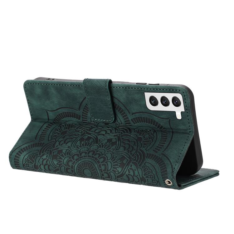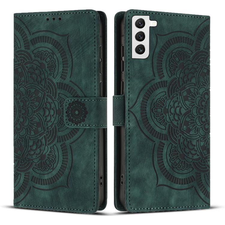 For Samsung Galaxy S21+ 5G Mandala Embossed Retro Frosted Leather Phone Case(Green)