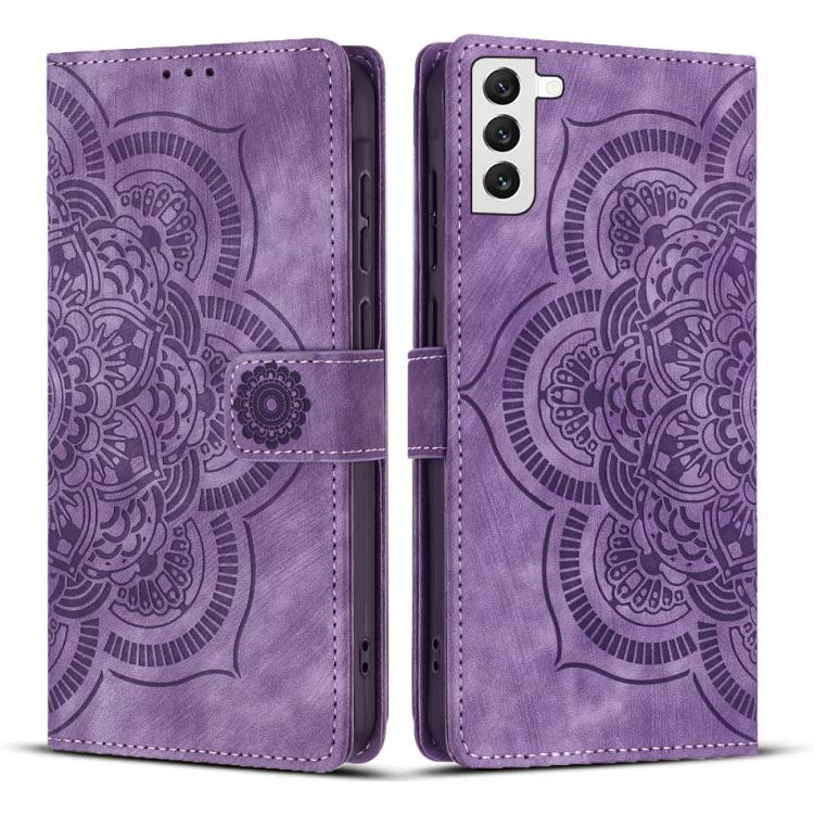 For Samsung Galaxy S21+ 5G Mandala Embossed Retro Frosted Leather Phone Case(Purple)