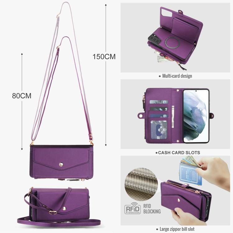 For Samsung Galaxy S21 5G Multifunctional Wallet Detachable Leather Phone Case with Lanyard(Dark Purple)