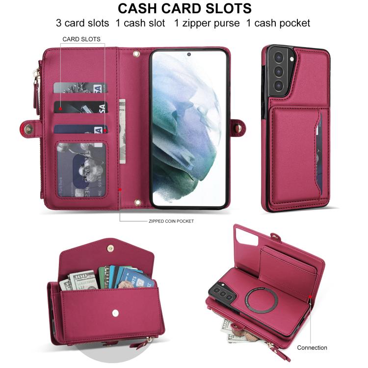 For Samsung Galaxy S21+ 5G Multifunctional Wallet Detachable Leather Phone Case with Lanyard(Red)
