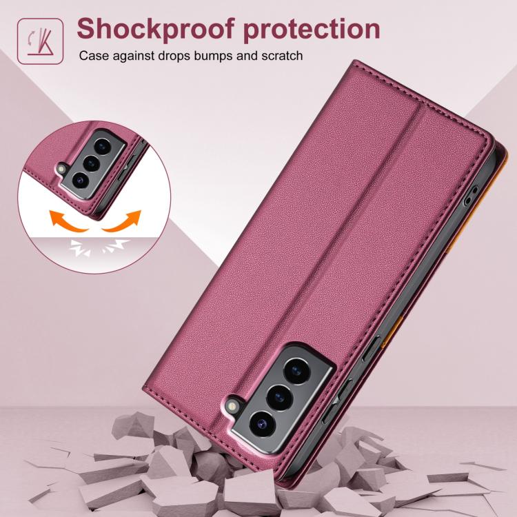 For Samsung Galaxy S21+ 5G N.BEKUS P3 RFID Stitching Magnetic Flip Leather Phone Case(Wine Red)