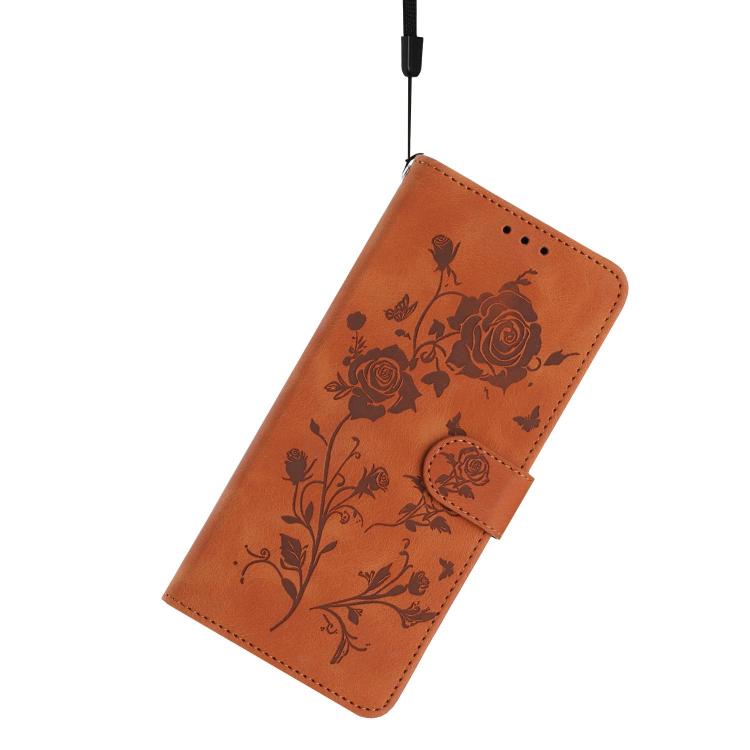 For Samsung Galaxy S21+ 5G Rose Flower Embossing Pattern Leather Phone Case(Brown)