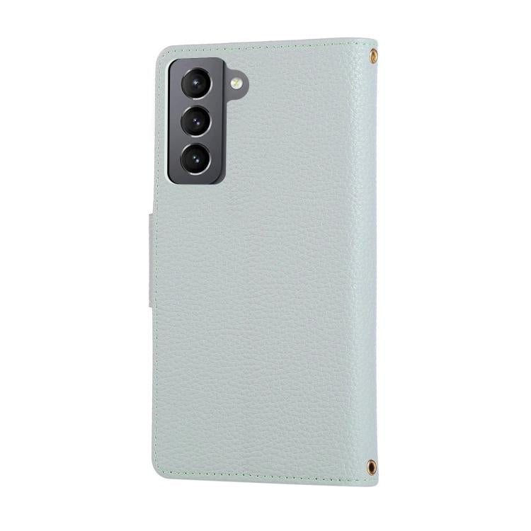 For Samsung Galaxy S21+ 5G Round Buckle Zipper Wallet Leather Phone Case with Crossbody Strap(Sky Blue)