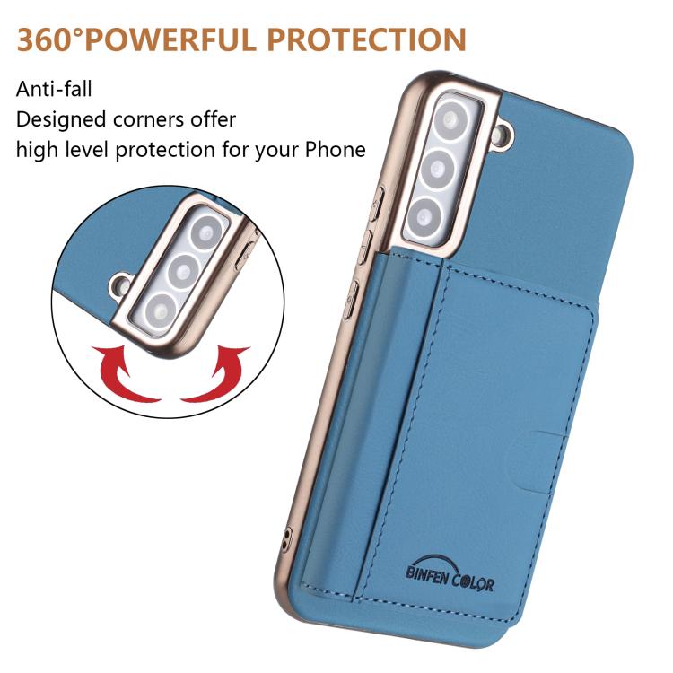 For Samsung Galaxy S21 5G Solid Color Horizontal Magnetic Card Bag RFID MagSafe Phone Case(Baby Blue)