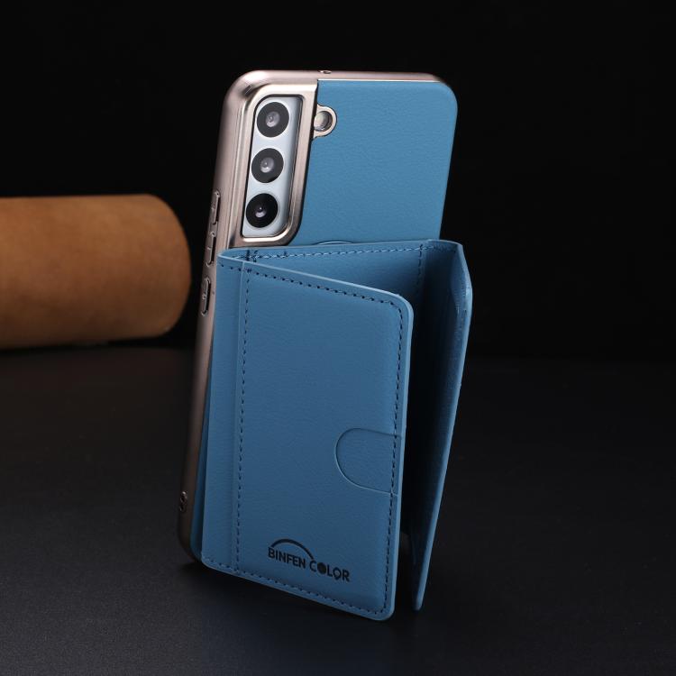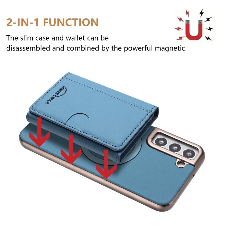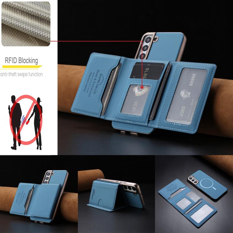 For Samsung Galaxy S21+ 5G Solid Color Horizontal Magnetic Card Bag RFID MagSafe Phone Case(Baby Blue)