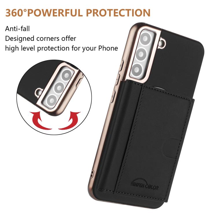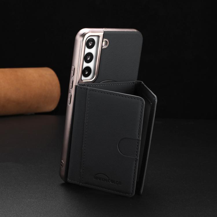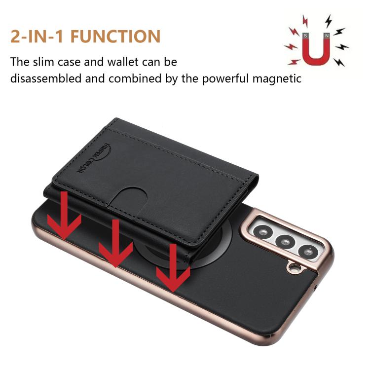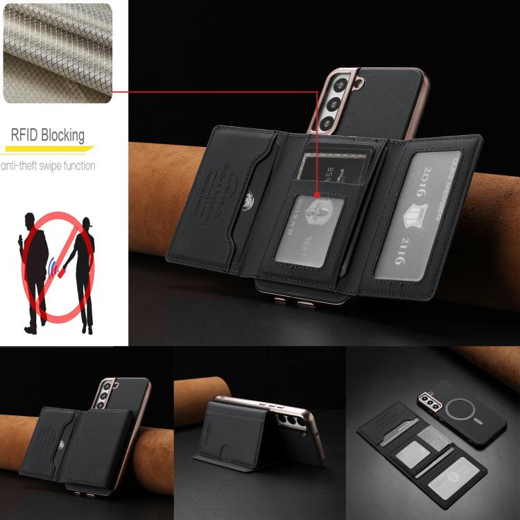 For Samsung Galaxy S21 5G Solid Color Horizontal Magnetic Card Bag RFID MagSafe Phone Case(Black)