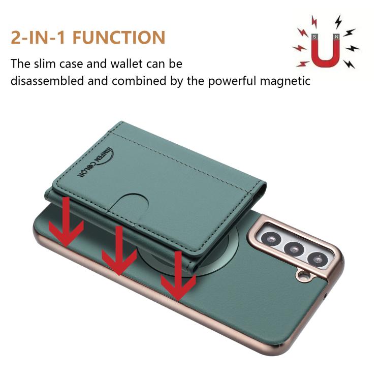 For Samsung Galaxy S21 5G Solid Color Horizontal Magnetic Card Bag RFID MagSafe Phone Case(Green)