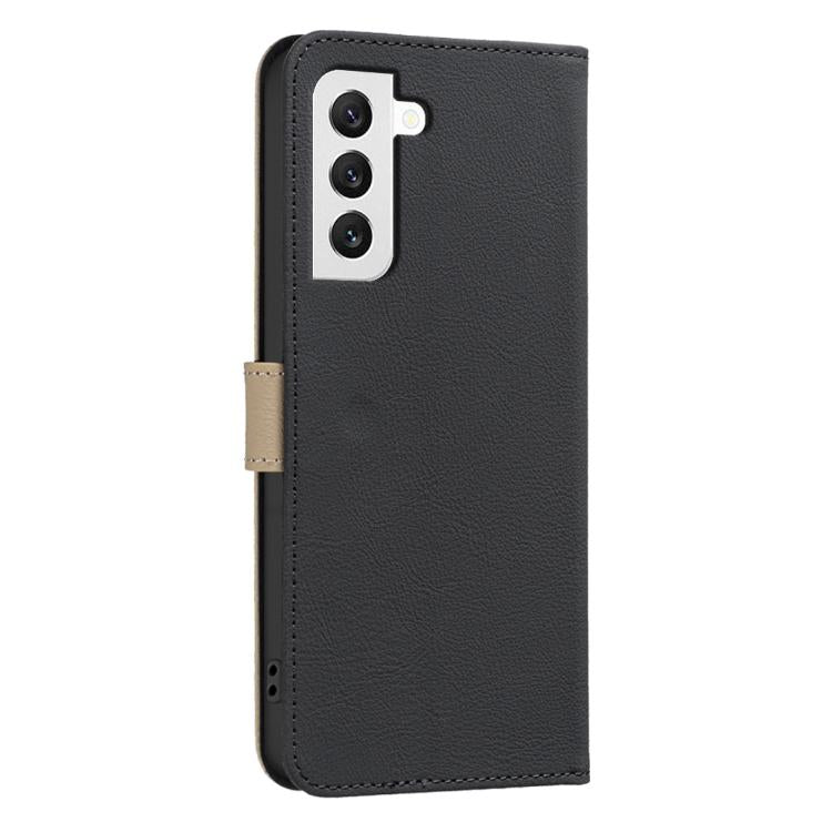 For Samsung Galaxy S21+ 5G Splicing Color Hollow Flower Pattern RFID Leather Phone Case(Black)