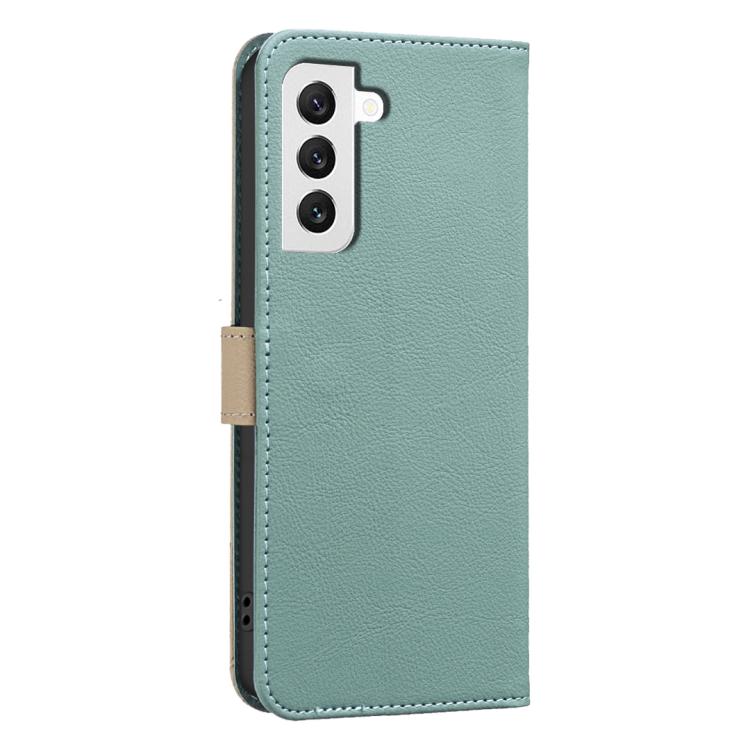 For Samsung Galaxy S21 5G Splicing Color Hollow Flower Pattern RFID Leather Phone Case(Green)