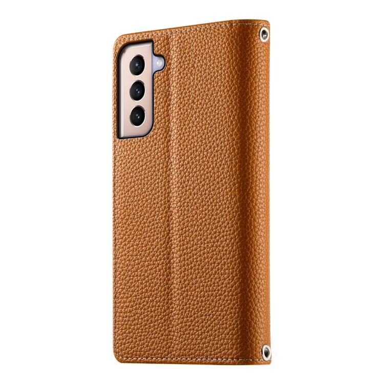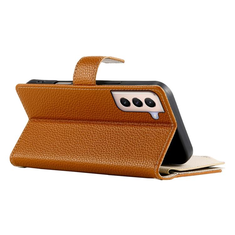 For Samsung Galaxy S21+ 5G Stitching Multi-card Zipper Wallet Leather Phone Case with Short Strap(Brown)