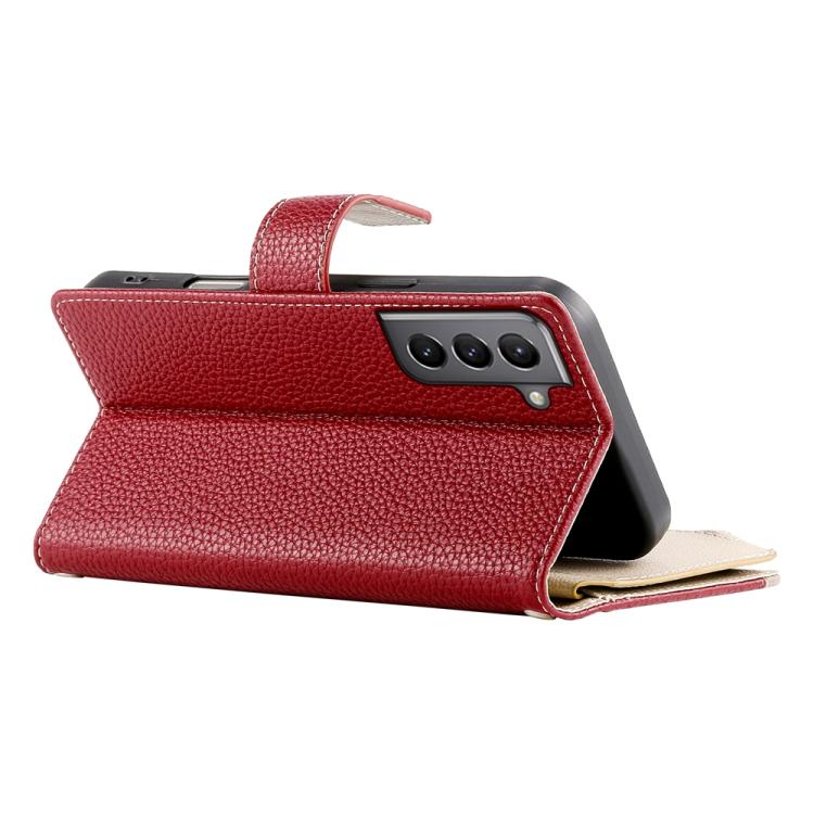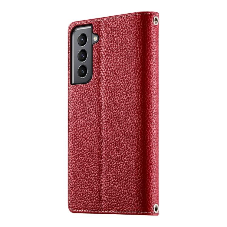 For Samsung Galaxy S21 5G Stitching Multi-card Zipper Wallet Leather Phone Case with Short Strap(Red)