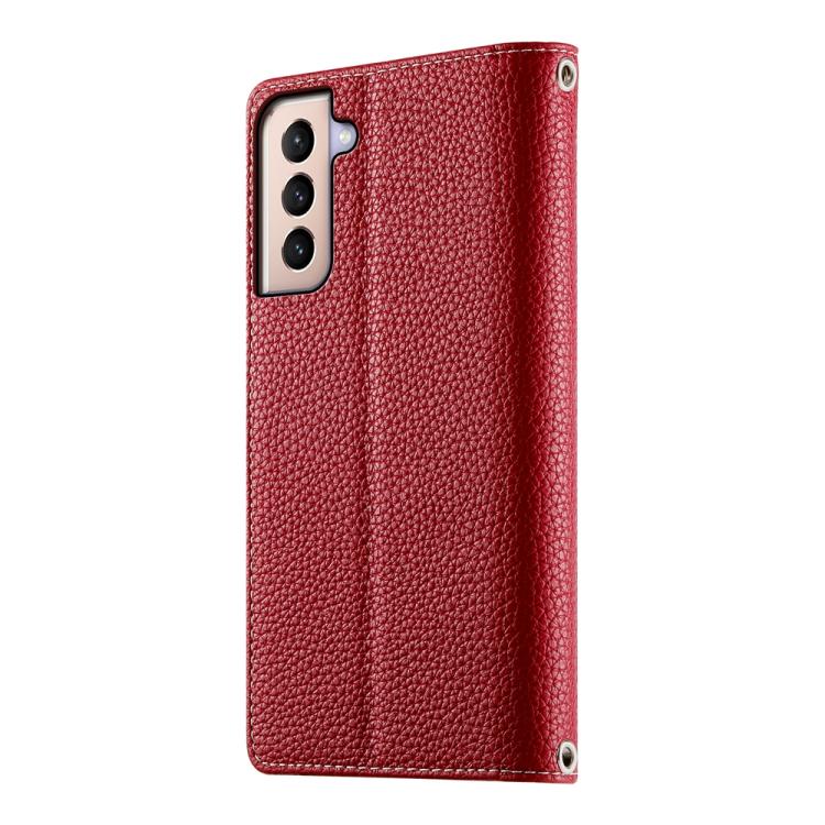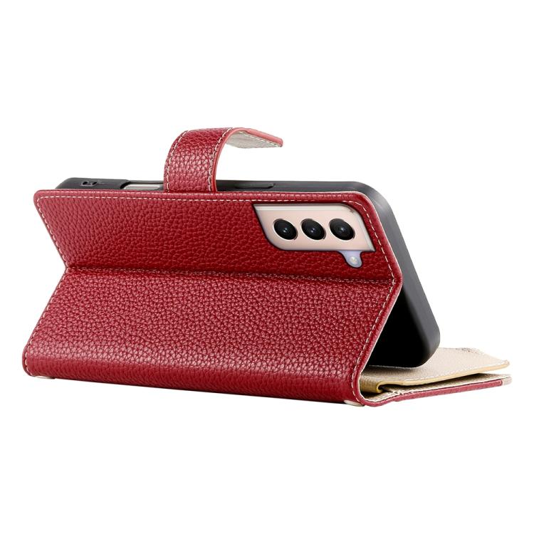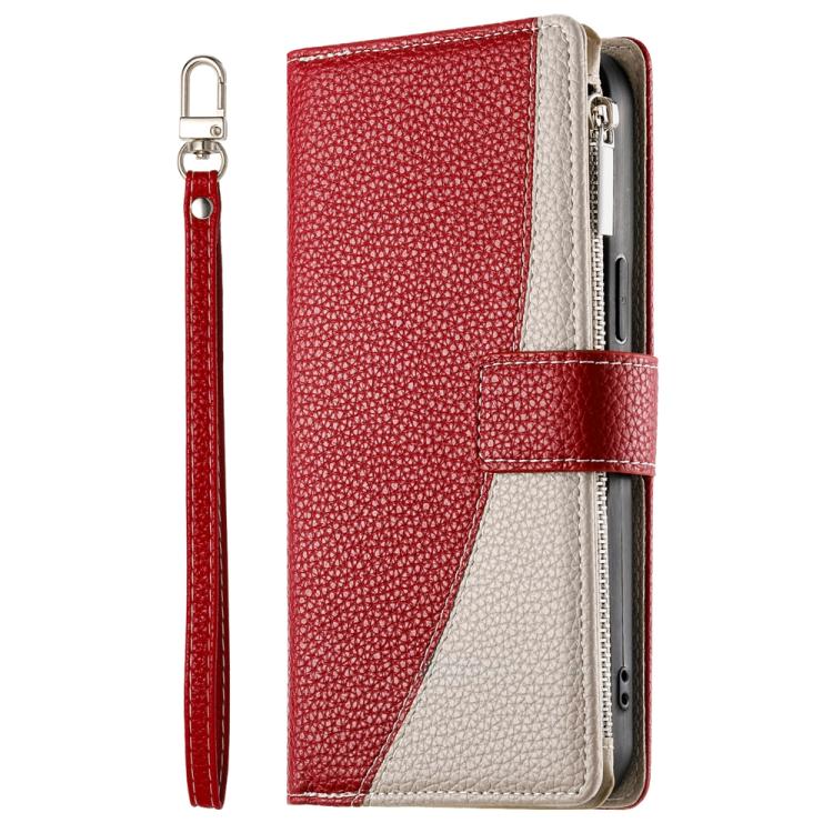 For Samsung Galaxy S21+ 5G Stitching Multi-card Zipper Wallet Leather Phone Case with Short Strap(Red)