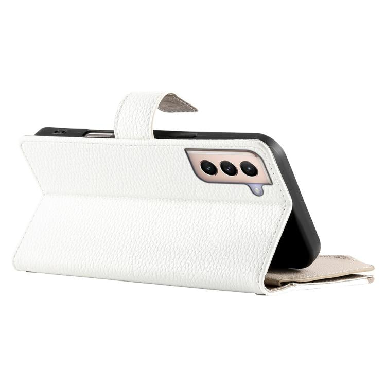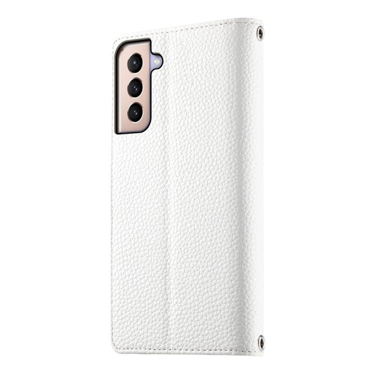 For Samsung Galaxy S21+ 5G Stitching Multi-card Zipper Wallet Leather Phone Case with Short Strap(White)