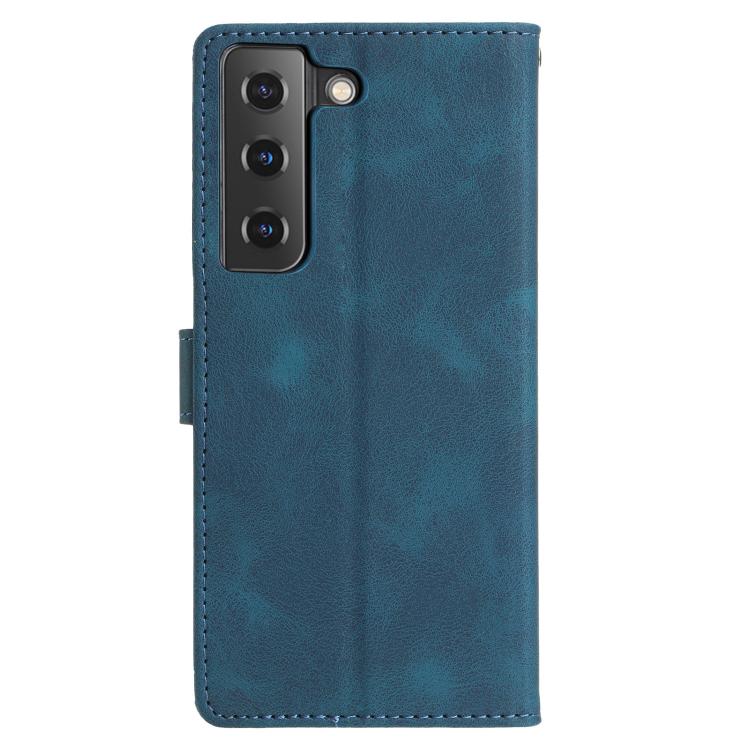 For Samsung Galaxy S21 5G Triangles Embossed Leather Phone Case(Blue)