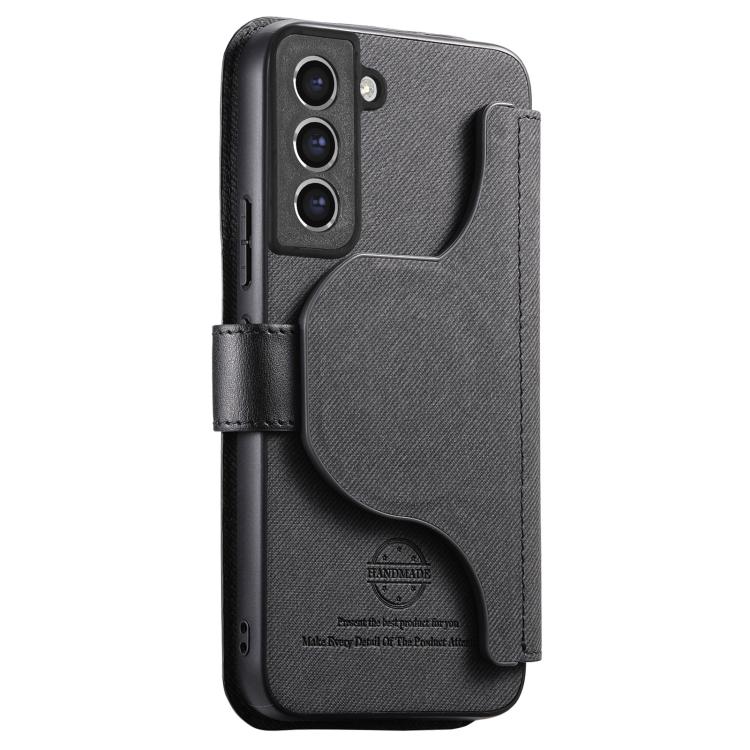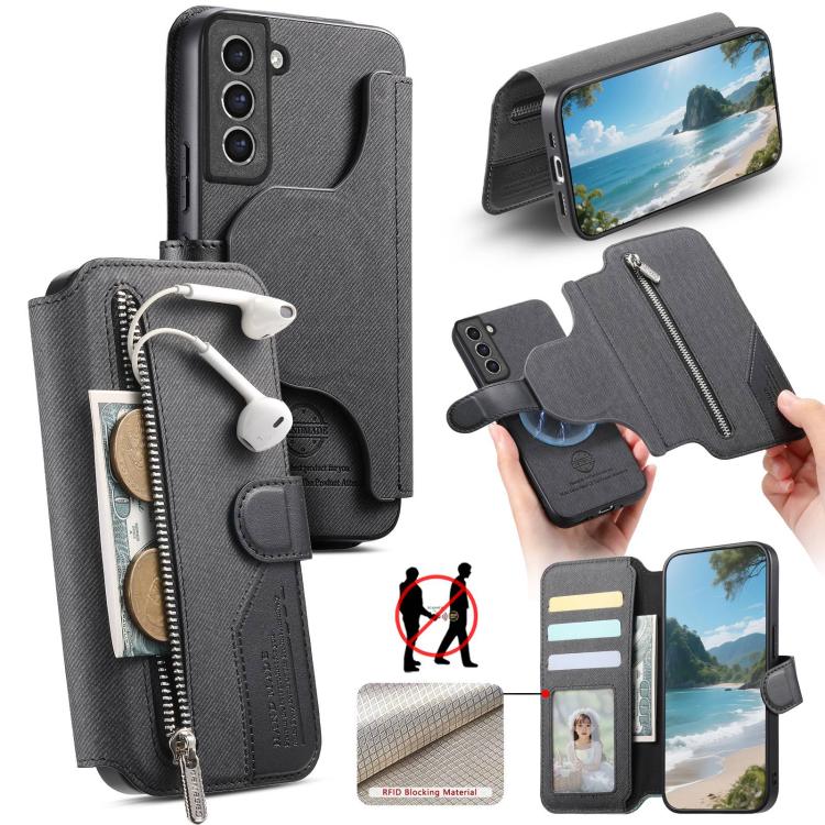 For Samsung Galaxy S21 5G Twill Fabric MagSafe RFID Anti-theft Zipper Wallet Leather Phone Case(Black)
