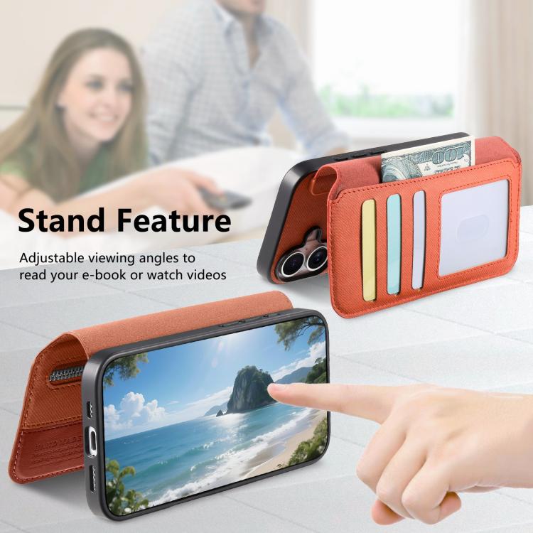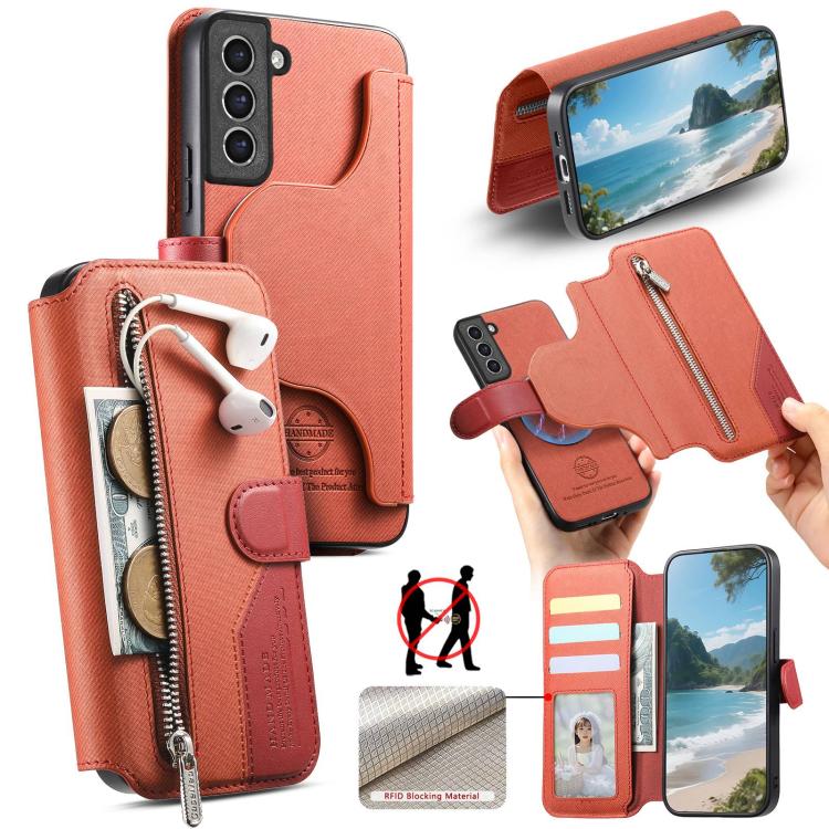 For Samsung Galaxy S21 5G Twill Fabric MagSafe RFID Anti-theft Zipper Wallet Leather Phone Case(Orange)